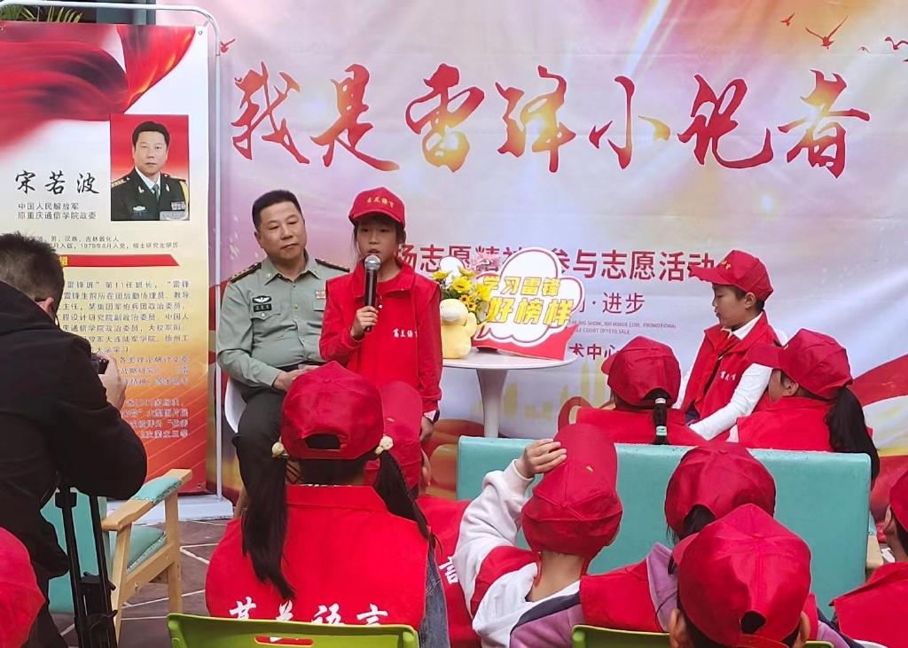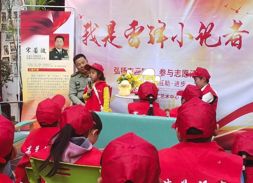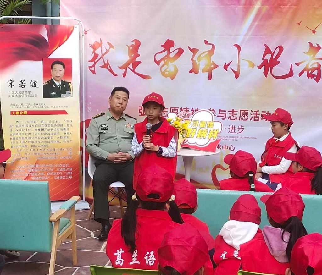 据了解,此活动得到了中国人民解放军重庆通信学院原政委宋若波的大力支持,宋政委来到孩子身边,讲述雷锋的故事。和孩子们剖析雷锋身上“一颗钉”的学习精神、“一家人”的鱼水精神、“一分钱”的节约精神、“一辈子”的奉献精神……