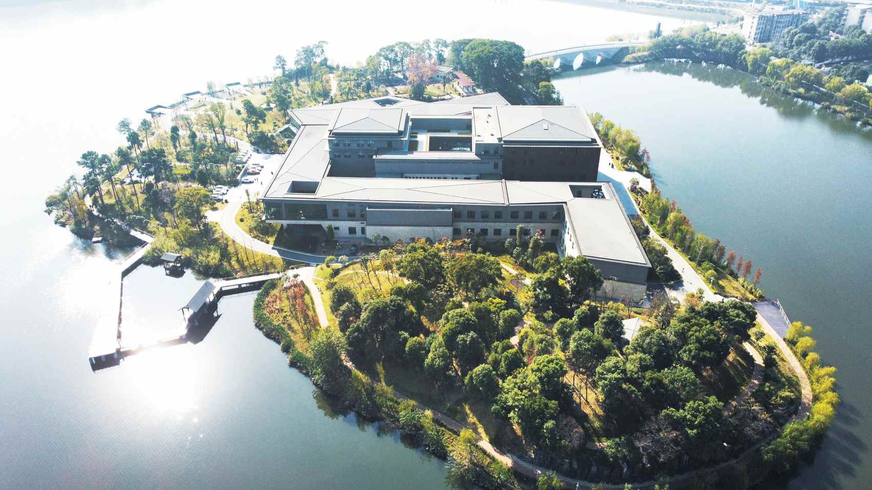 湖南省岳阳市图书馆坐落于岳阳市南湖之畔风景优美的螺丝岛上,坚持“岛馆一体”的设计理念,采用古典园林的“借景”手法,空间上有机结合山势地貌,使图书馆与螺丝岛互为景观,在鸟语花香间营造出一个静谧空间,成为广大市民向往的品味书香、修身养性之所。