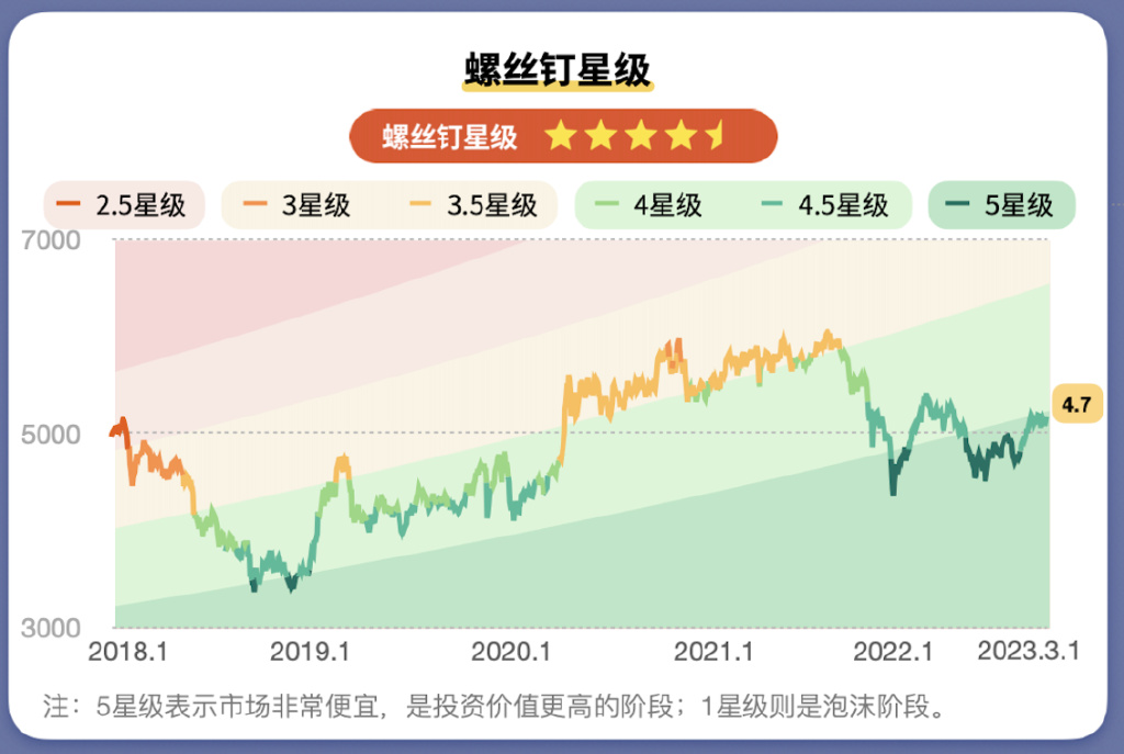 5星级,是投资价值很高的阶段。过去5年,5星级的时间,在全部时间中,占比约5%。