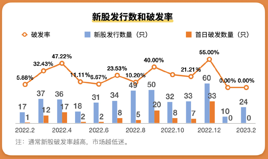 •2022年4月份5星级的时候,破发率接近50%;•9月份回到5星级后,破发率也有40%。2022年12月份,因为参与者数量下降,比较低迷,破发率创下2022年新高,超过一半新股破发。今年市场反弹之后,破发率下降了不少。