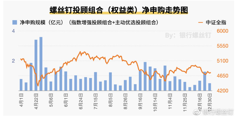 下图就是2022年中证全指走势,与同期主动优选、指数增强申购量的走势。